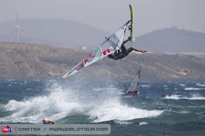 The 4th day of the Gran Canaria Wind and Waves festival finally saw some action, two heats of the junior contest were run, and a few pros hit the water.