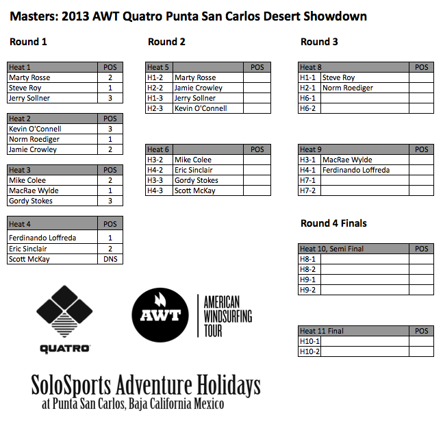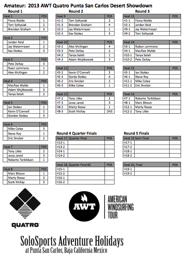 The second round was higher pressure, with it being there second chance and only the two riders from each heat advancing to round 3. Luckily wind was up and waves pumped through. Winning these heats were Jay Watermeyer, Tanya Saleh, Mike Colee and Marty Rosse, while also advancing as second place finishers are Tom Soltysiak, Pete DeKay, Eric Sinclair and Tony Litke.