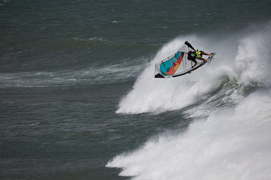 The semifinal heat was stacked featuring Juban, Siver, Pritchard and Teboul. Part way through the heat Siver landed an insane Air Taka on a nice wave that seemed to clinch his spot in the final. Teboul battled hard but didn’t quite find the waves the others did and finished the heat in 4th position; however, his stylish turns on each wave seem to lay down the scale for which all turns should be judged in a windsurfing competition… you want to turn like Teboul. It came down to Jubans huge head-dip aerials versus Pritchards powerful roundhouse turns. Pritchard even stuck a one-footed aerial right in front of the judges, but it just wasn’t enough to take down Juban. So the final was set: Siver versus Juban!`