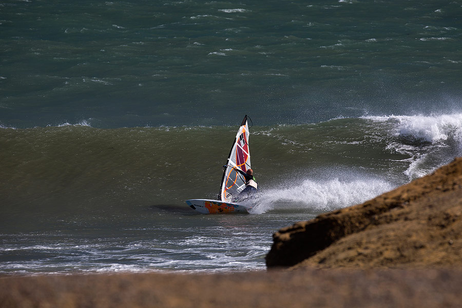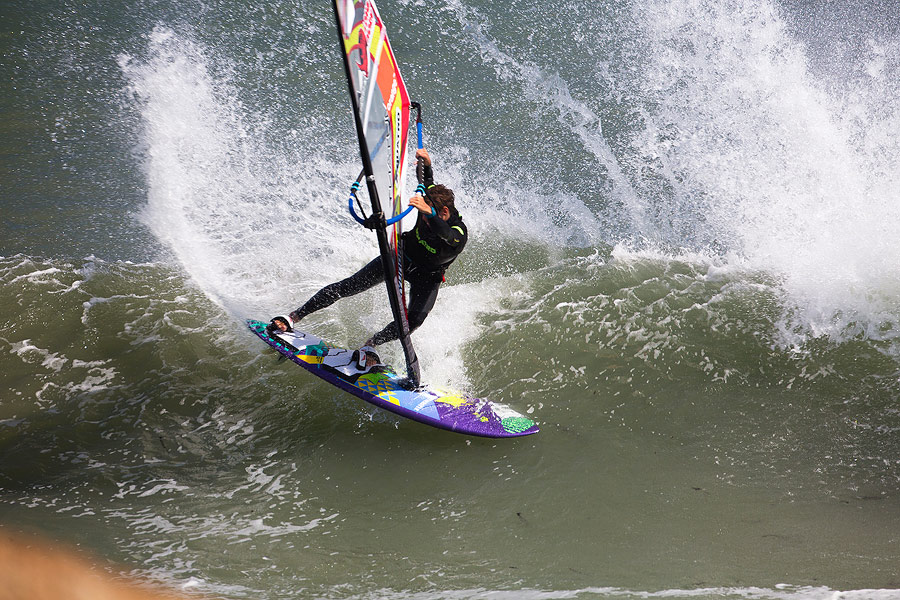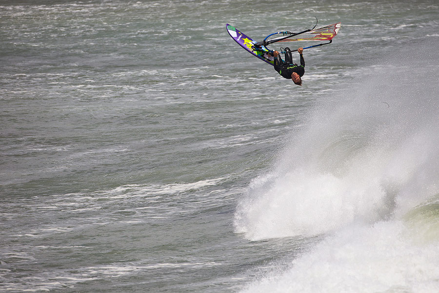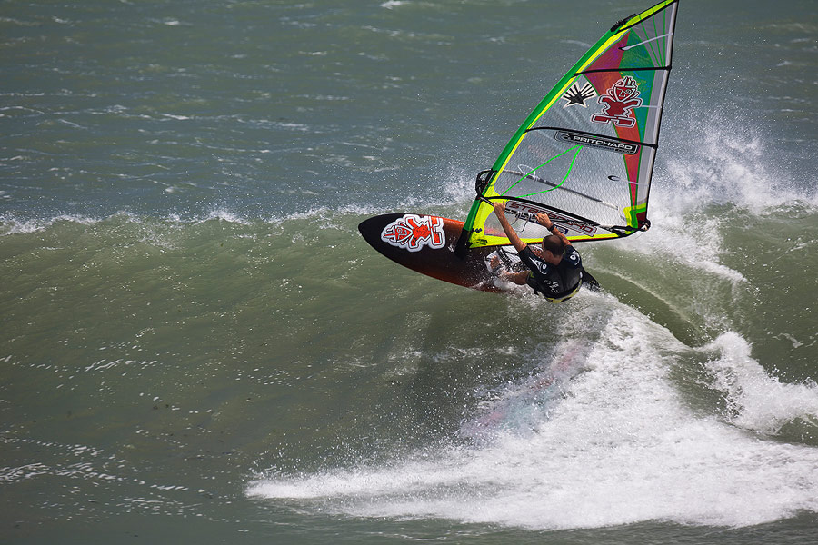 The semifinal heat was stacked featuring Juban, Siver, Pritchard and Teboul. Part way through the heat Siver landed an insane Air Taka on a nice wave that seemed to clinch his spot in the final. Teboul battled hard but didn’t quite find the waves the others did and finished the heat in 4th position; however, his stylish turns on each wave seem to lay down the scale for which all turns should be judged in a windsurfing competition… you want to turn like Teboul. It came down to Jubans huge head-dip aerials versus Pritchards powerful roundhouse turns. Pritchard even stuck a one-footed aerial right in front of the judges, but it just wasn’t enough to take down Juban. So the final was set: Siver versus Juban!`
